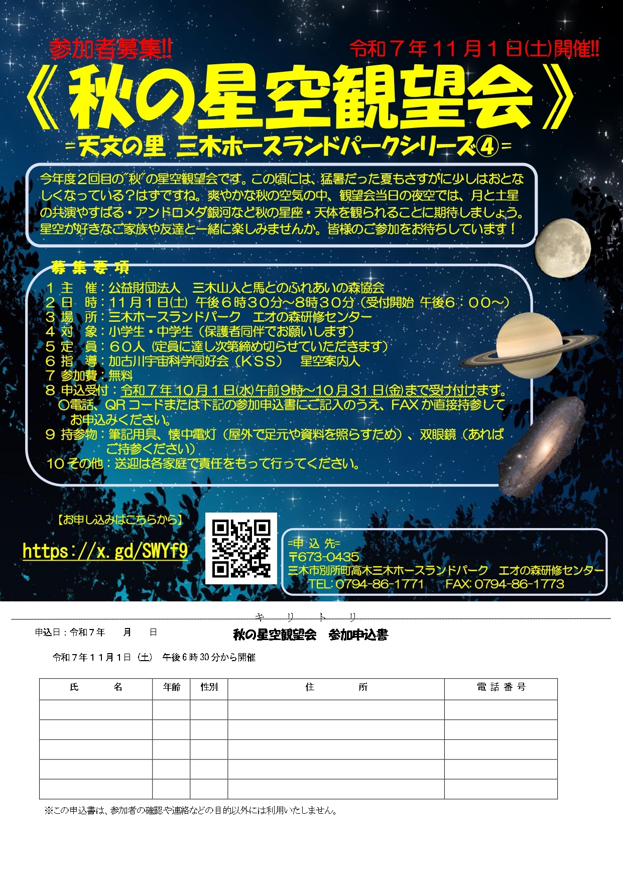 11/1 秋の星空観望会(三木ホースランドパーク)
