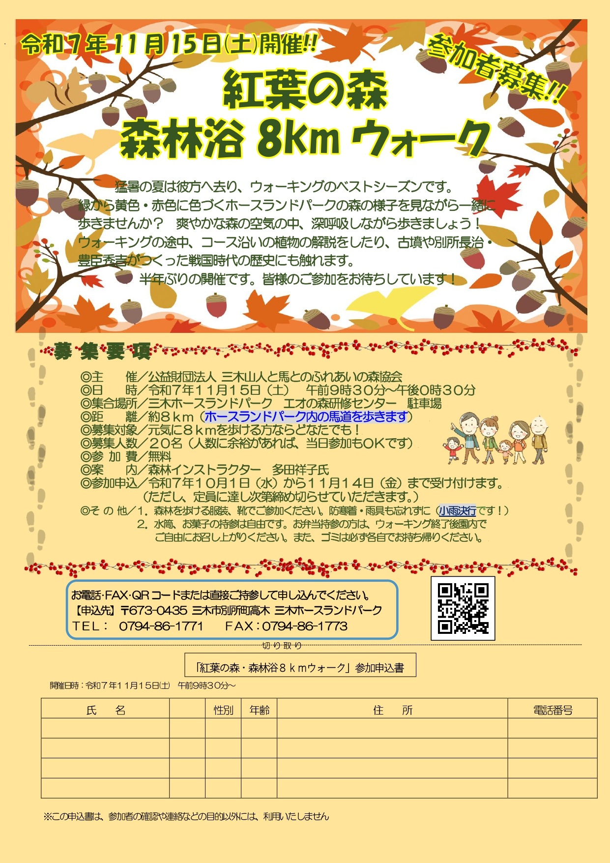 11/15 紅葉の森 森林浴8kmウォーク(三木ホースランドパーク)