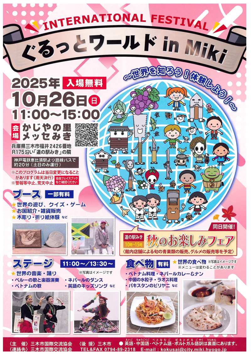 【主催・お問合せ】三木市国際交流協会 TEL:0794-89-2318