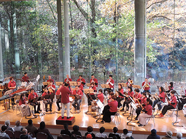 「まるで森の中にあるような」音楽ホールで恒例のコンサートをお楽しみください。三木市内を中心に活躍中の三木市吹奏楽団の皆さんが演奏します。