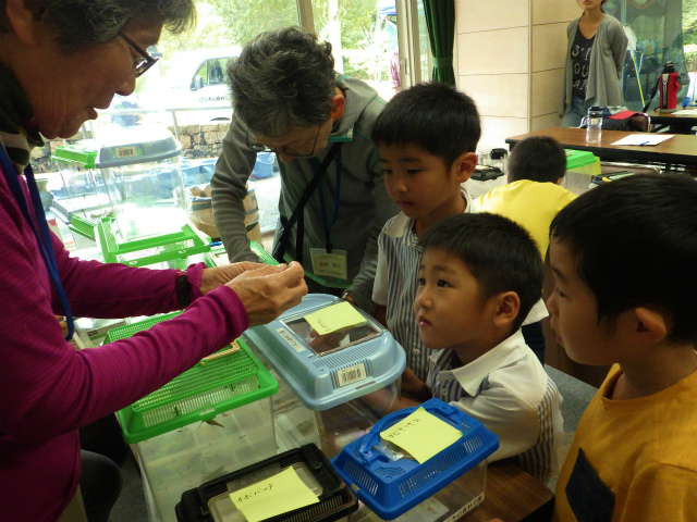 【内容】 ペットボトルでオリジナルの昆虫用モンドリ(簡易虫とり)を作り、園内に昆虫採取に出ます。採取した昆虫は、カヤの中に放って習性を観察します。