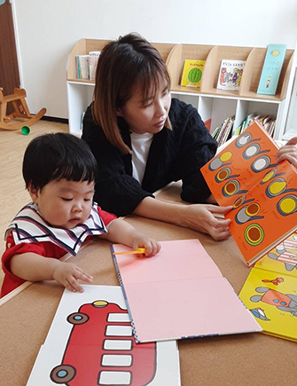 男の子3人がスタッフさんに見守られながら、それぞれ興味のあるおもちゃで遊んでいました。スタッフさんからは「お預かりしている間、あたたかな気持ちを持ってお子さんと一緒に関わることを大切にしている」とお話ししてもらいました。実際、スタッフさんの膝にごろんと身を任せたり、どのお子さんもリラックスして過ごしている様子が伺えました。取材中おもちゃを「どうぞ」してもらい、可愛いな〜と目を細めながら笑、異年齢交流や遊びを通して自然と人との関わりを純粋に楽しんでいるなと感じました。そこからあらたな発見や学びにつながっているんでしょうね。