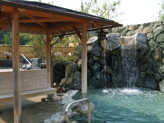 週替わりの大浴場「幸」と「福」の湯には、サウナや釜風呂のほか、各湯にあるかけ流し式の源泉風呂から湯がこんこんと湧き出ています。