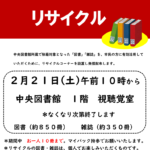 お待たせしました!図書館のリサイクル市が今年もやってきます。 並ぶのは、なんと図書850冊、雑誌350冊の計1,200冊! 「あの時読み逃した週刊誌」や「ずっと気になっていたあの分野の本」が、無料でお手元に。 1人10冊まで持ち帰りOKなので、気になる本は迷わずゲットしてください。 ただし、「早い者勝ち」です! なくな....