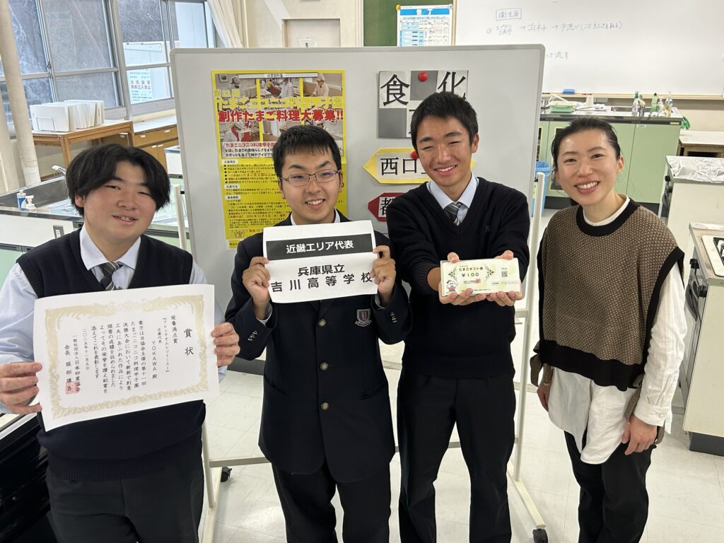 先日、神戸新聞にも掲載のありました吉川高校3名による「たまごニコニコ料理甲子園」の結果が発表され、チームYOKAWAは栄養満点賞に輝きました。