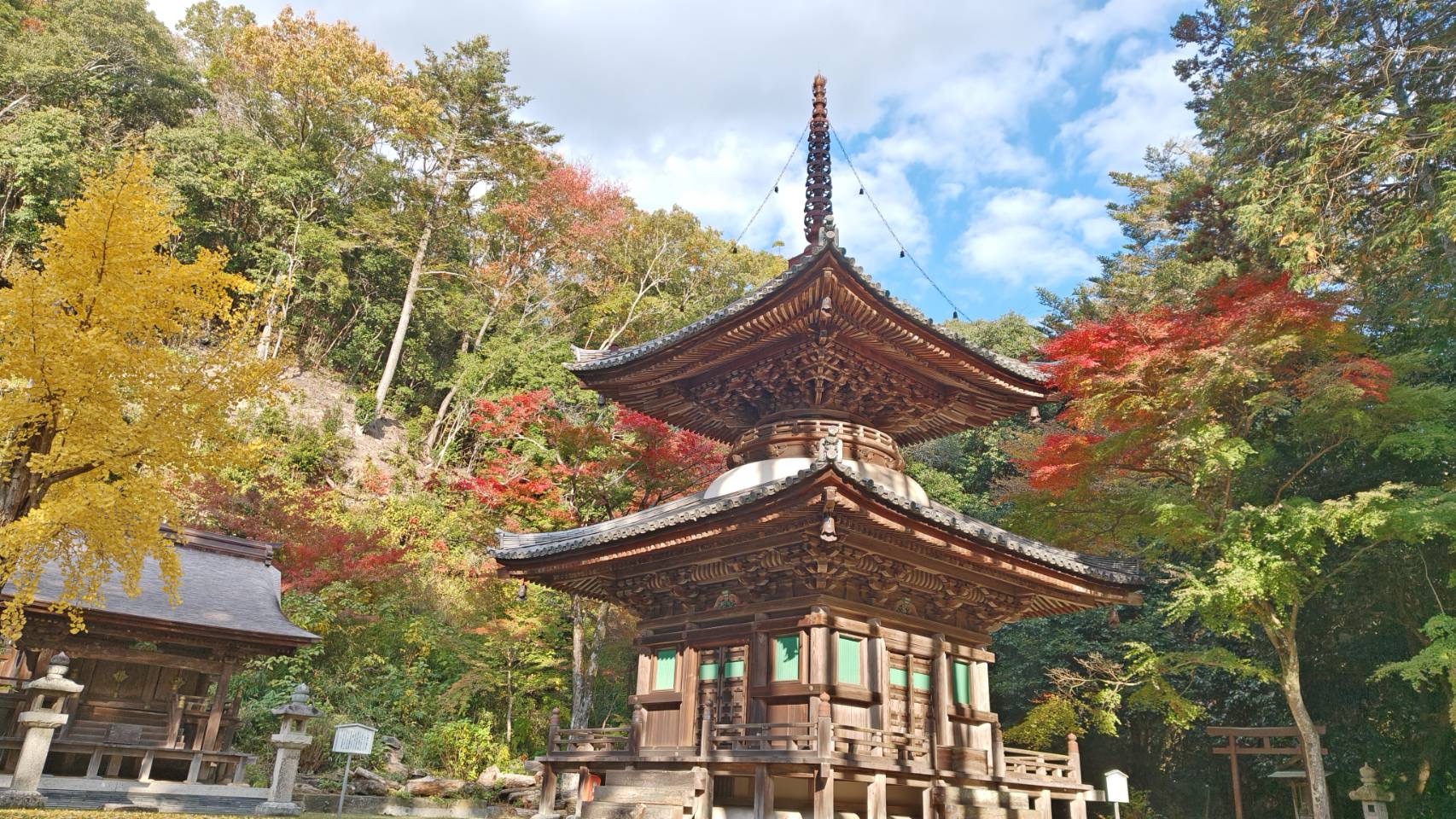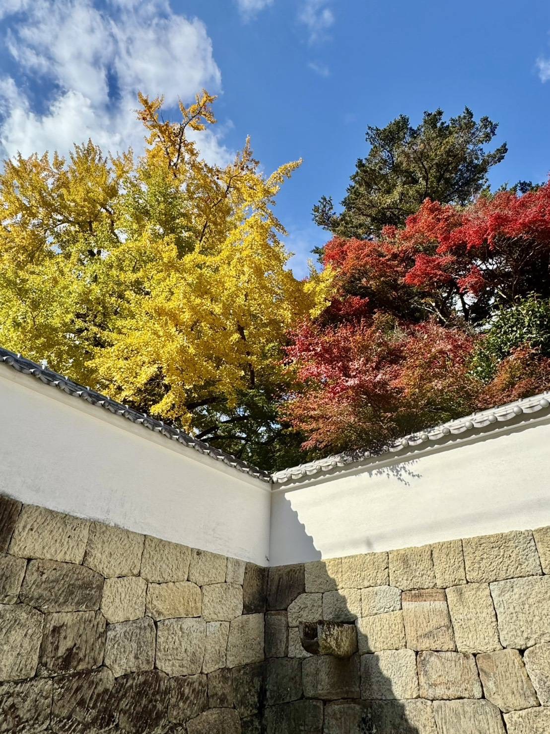 全体に赤い風景が広がっている感じではなかったのですが、紅葉の赤・銀杏の黄色・常緑の木々の緑、そこに晴れ渡った青空の色が加わり、今しか見られない、カラフルで素敵な景色でした!