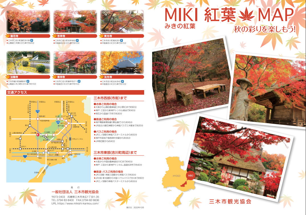 伽耶院だけでなく、三木市には紅葉の名所がたくさんありますので、この際、三木市観光協会発行の紅葉マップを手にして、三木市の紅葉を巡ってください。