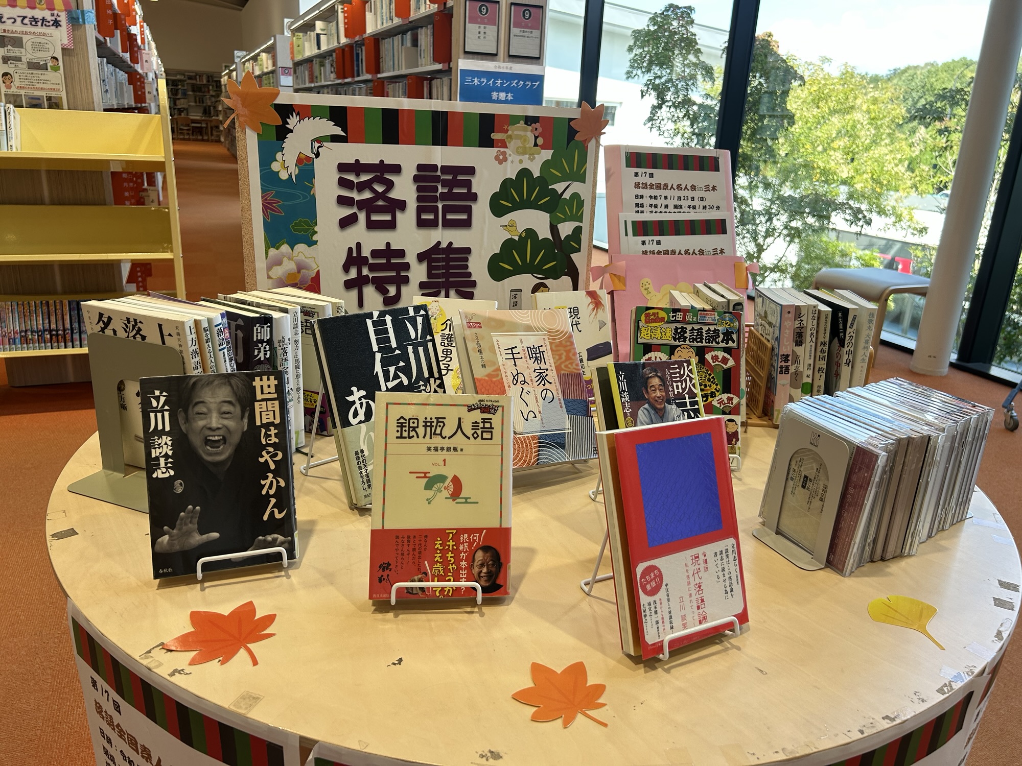 これに合わせて中央図書館の特集コーナーも落語でした。