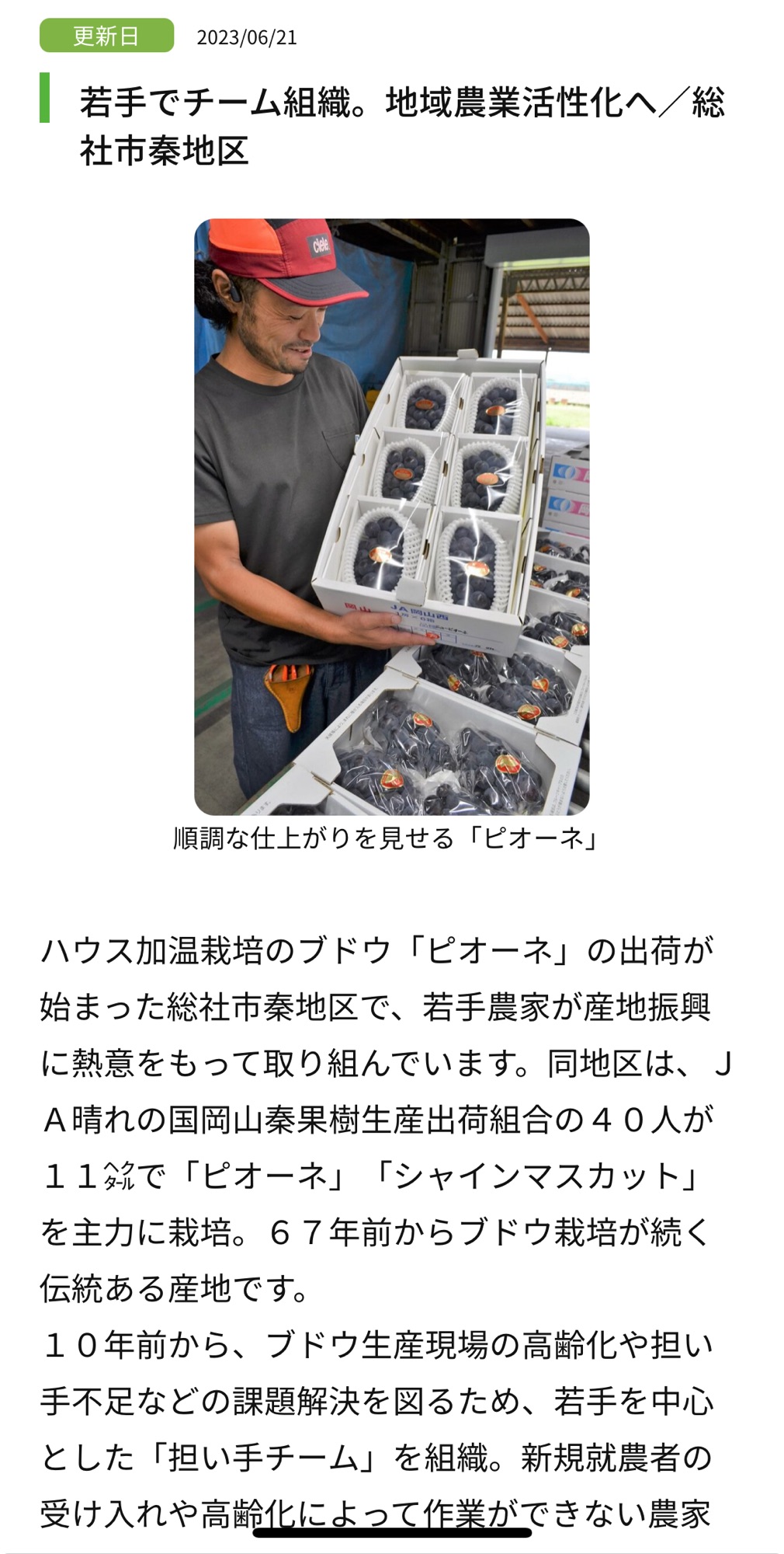 タイトルを「担い手チームええやん!」としたとおり、ぶどう生産農家同士の相互の助け合い制度にわくわく感を覚えました。