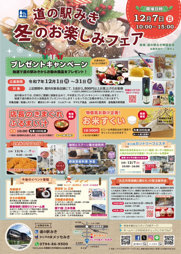 12月7日(日)、道の駅みき冬のお楽しみフェアが開催されます。