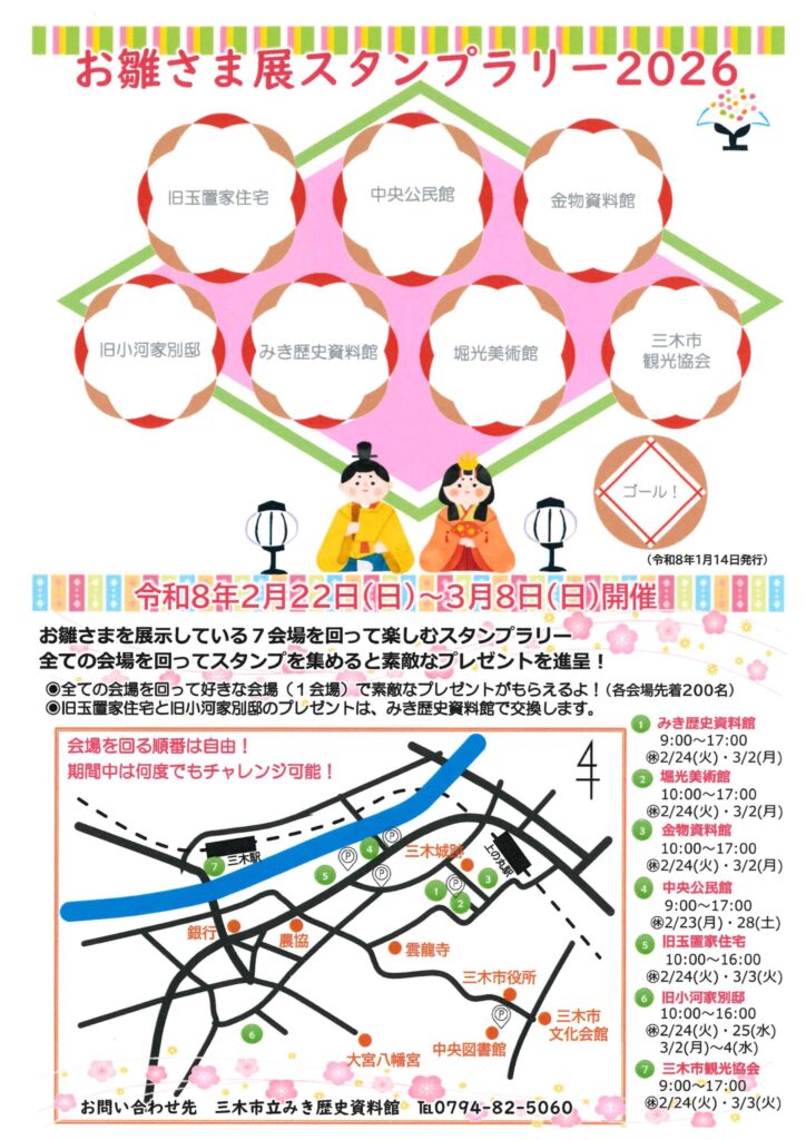 三木城跡周辺の歴史ある建物にお雛さまが飾られる「お雛さま展スタンプラリー」が今年も開催!