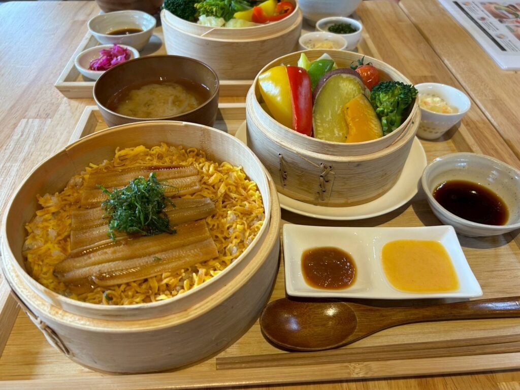 今回、僕とどんちゃんがいただいたのは、せいろ蒸し定食と穴子のせいろ蒸しご飯ランチ。
