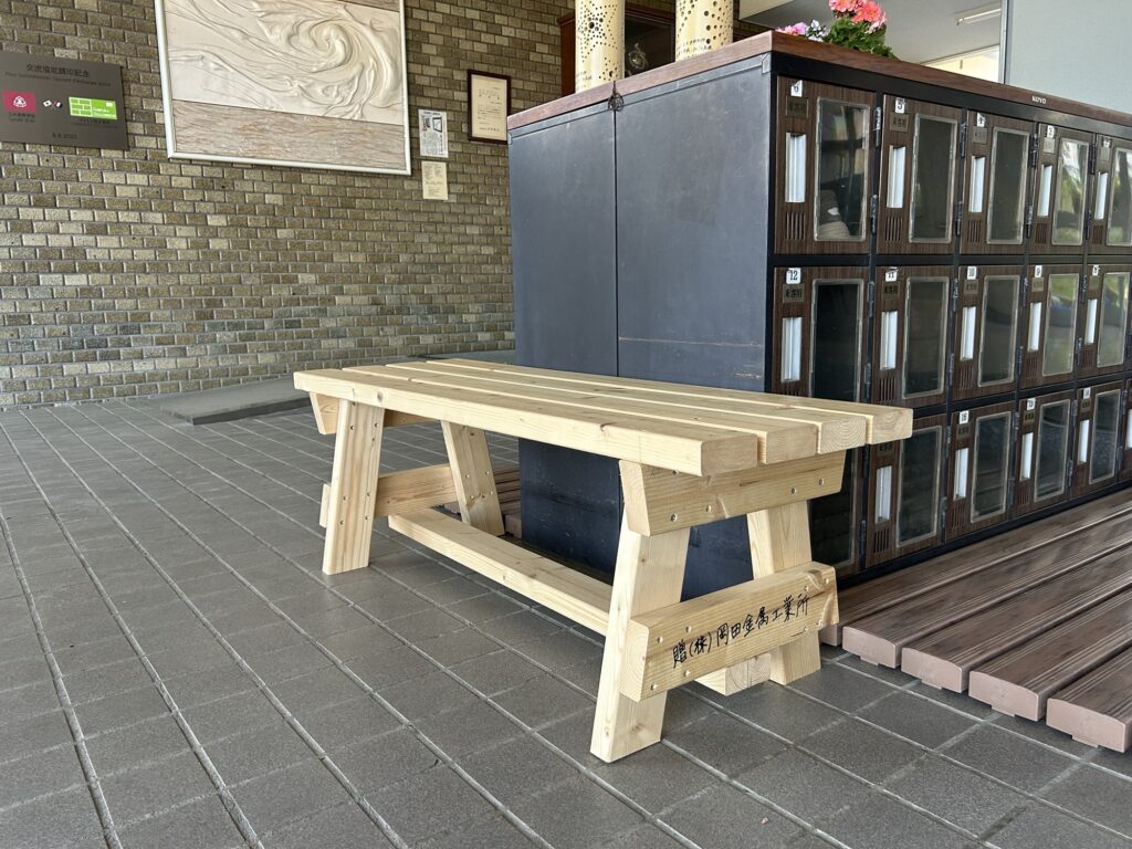 真新しい素敵なベンチを見つけました。